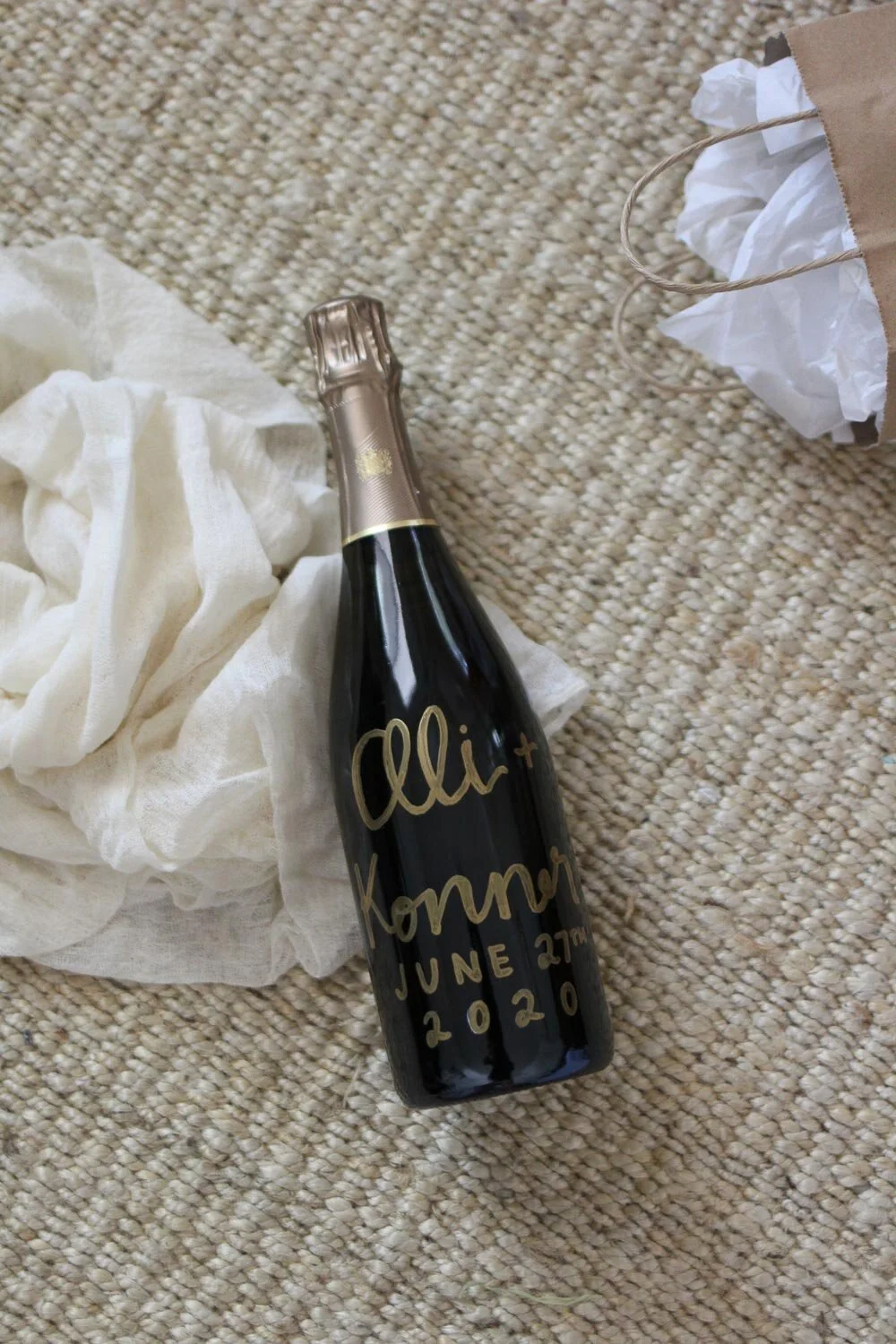 this was so fun to letter on this bottle of champagne for Ali & Konnor!